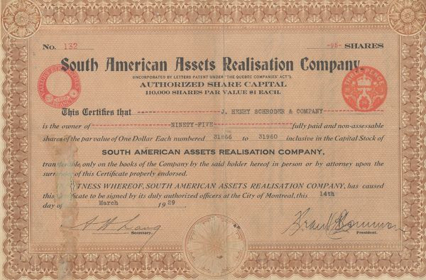 South American Assets Realisation Cy (Titre 95 Act 1$)