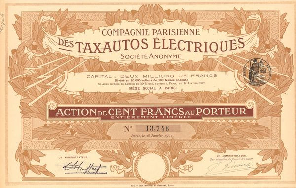 Cie Parisienne des Taxautos Electriques (Act 100 F)
