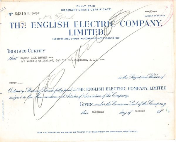 The English Electric Cy Ltd (Titre 50 Act 5 £)