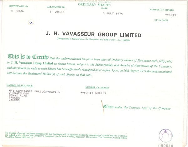 J.H. Vavasseur Group Ltd (Titre 40 Act 5p £)
