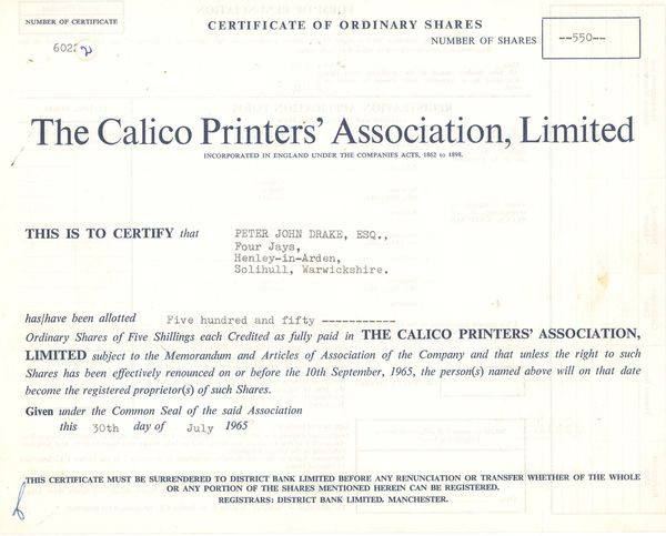 The Calico Printers' Association Ltd (Titre 550 Act 5s £)