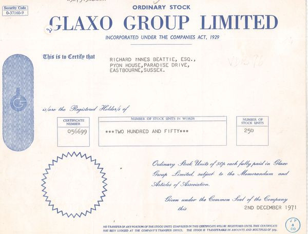 Glaxo Group Ltd (Titre 250 Act 50p £)