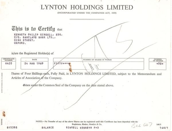 Lynton Holdings Ltd (Titre 50 Act 4s £)