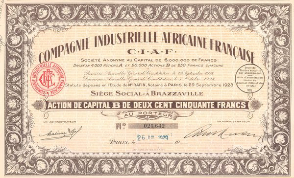 Cie Industrielle Africaine Française (C. I. A. F.) (Act B 250 F)