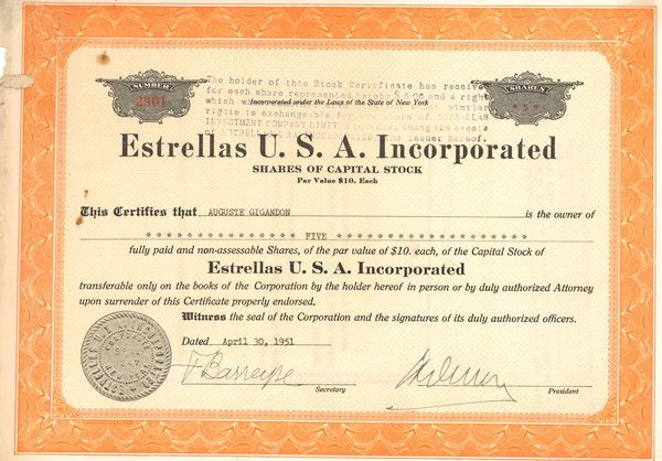 Estrellas U.S.A. Incorporated (Titre 05 Act 10 $)