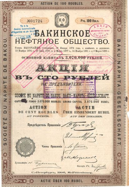Sté du Naphte de Bakou (Act 100 Rbls)